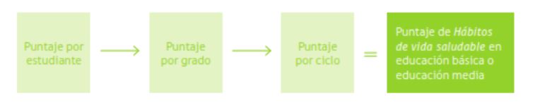 1. Cálculo del puntaje por estudiante: se asigna un puntaje a cada estudiante, basándose en sus respuestas en las preguntas del cuestionario Simce relacionadas con el indicador. El puntaje obtenido es mayor cuando las respuestas reflejan una mayor promoción de hábitos de vida saludable.